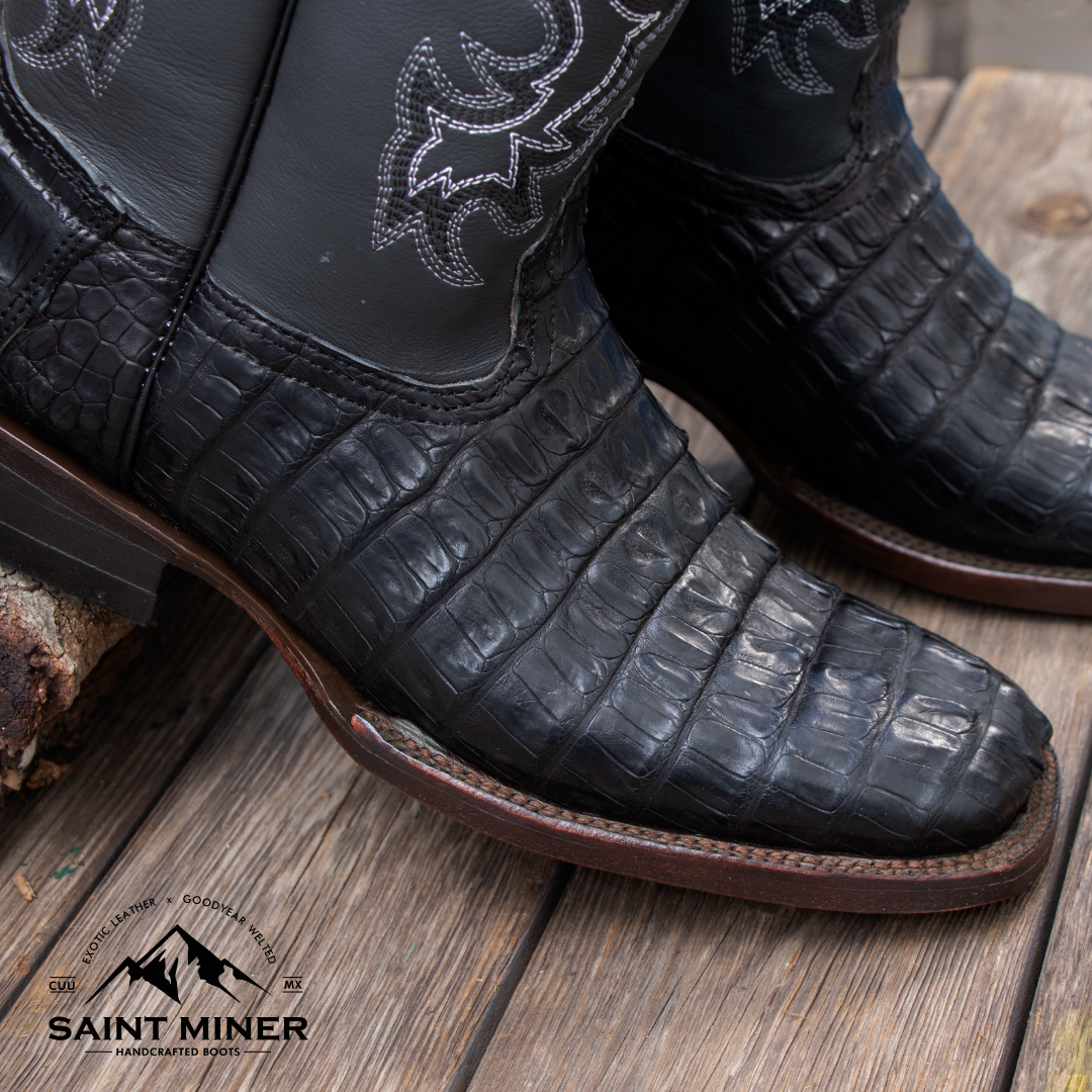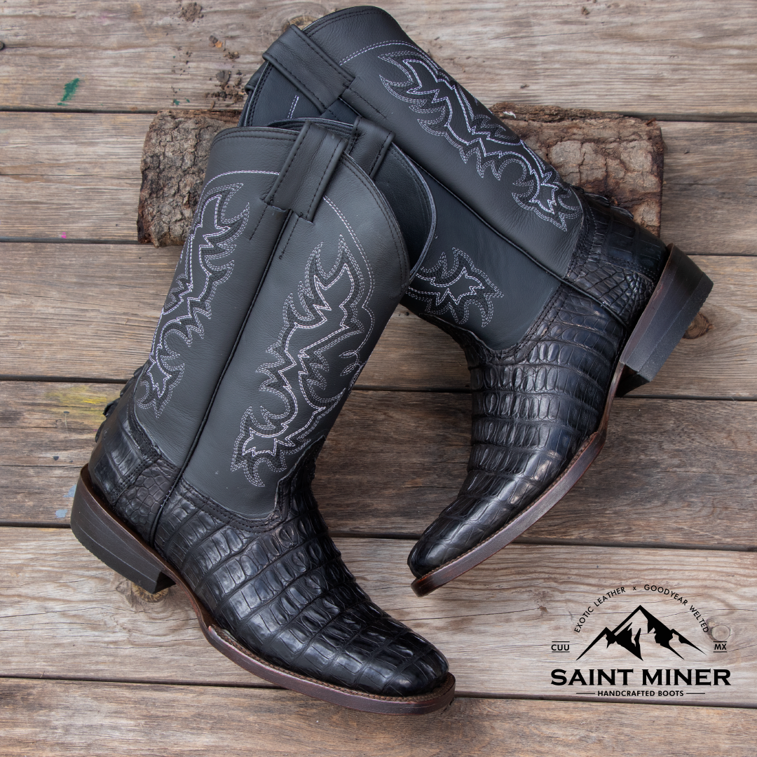 Botas hechas a mano con los mejores materiales, corte exótico, forro de res, tubo de res, suela de cuero vacuno.