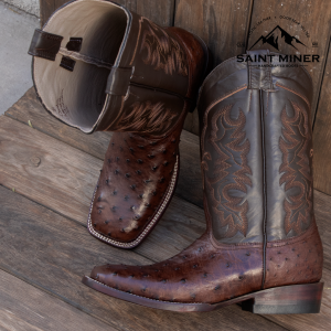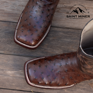 Botas de avestruz en color tabaco, forro y planta de res, suela de cuero, firme de hule y tacón de lefa. Pespuntado, cortado, montado y ensuelado a mano. El tamaño de la pluma varía en cada pedido y el color puede cambiar hasta un 15% en tonalidad.