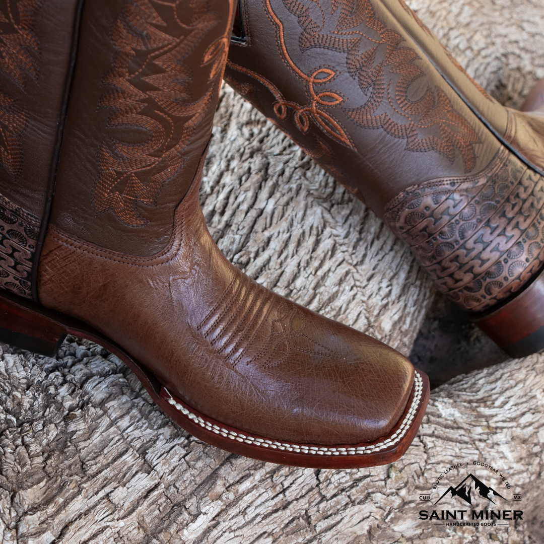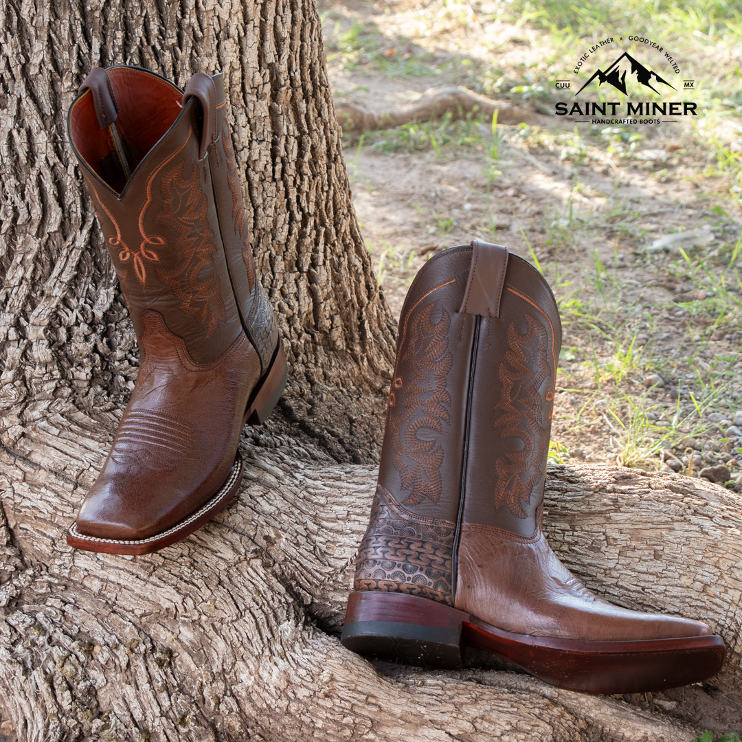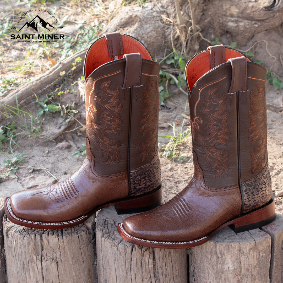 Botas hechas a mano con los mejores materiales, corte exótico, forro de res, tubo de res, suela de cuero vacuno.