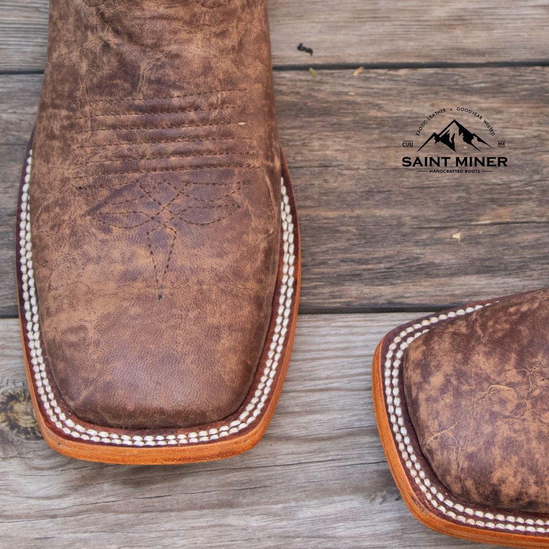 Hecho a mano con piel de cabra de calidad exportación, tubo de becerro y suela de cuero de res. Un diseño fuerte y auténtico que resalta en su tono álamo, ideal para combinar con mezclilla o looks vaqueros más clásicos. Cada par cuenta con bordado exclusivo en el tubo, lo que lo hace único. Envío gratis a todo México y cintote de regalo en tu pedido.