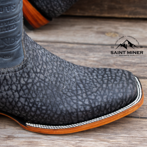 Botas de Blue Smoke en color gris, acabado nobuck, forro y planta de res, suela de cuero, firme de hule y tacón de lefa. Pespuntado, cortado, montado y ensuelado a mano. La textura del cuero varía en cada pedido y el color puede cambiar hasta un 15% en tonalidad.